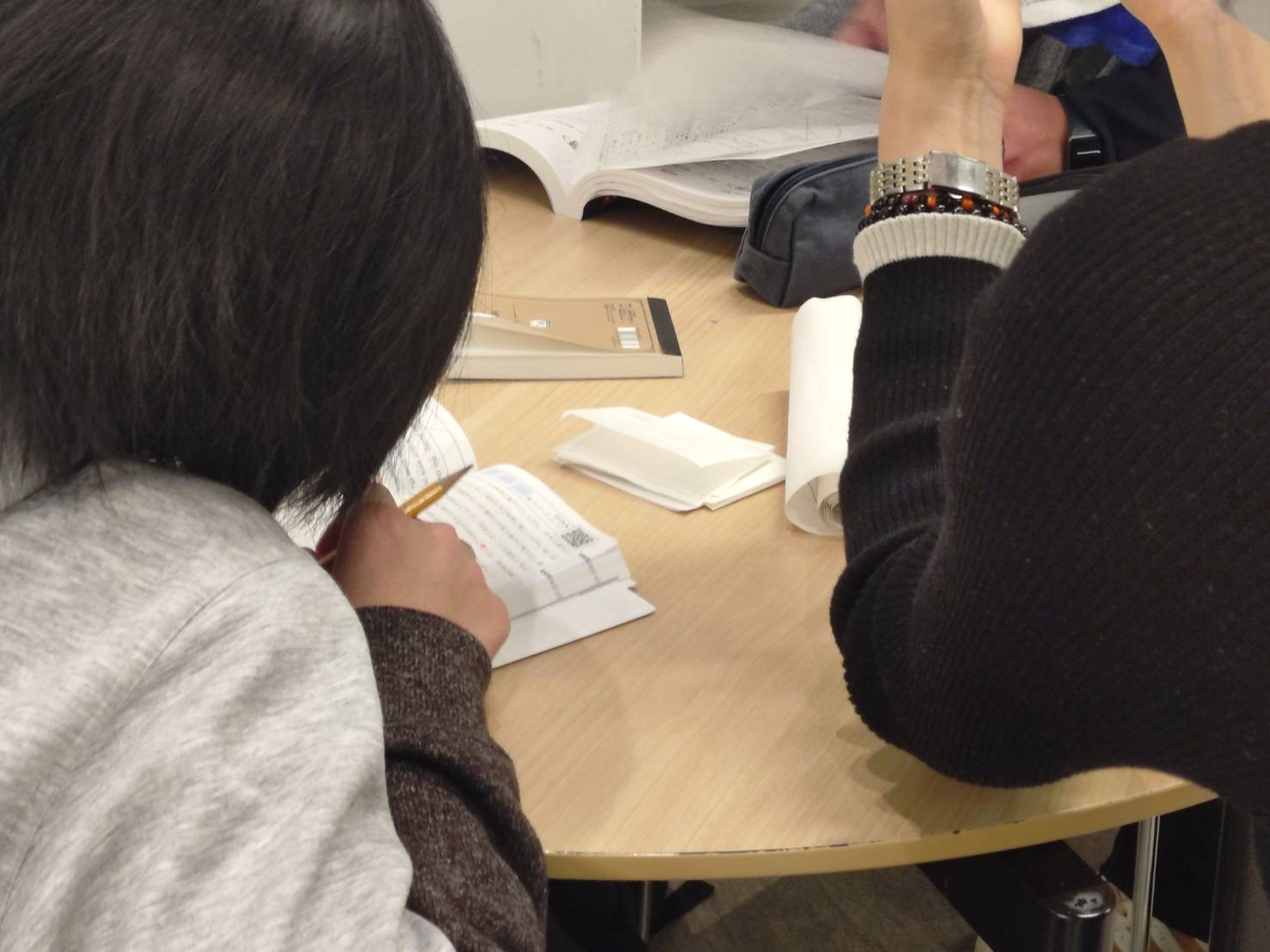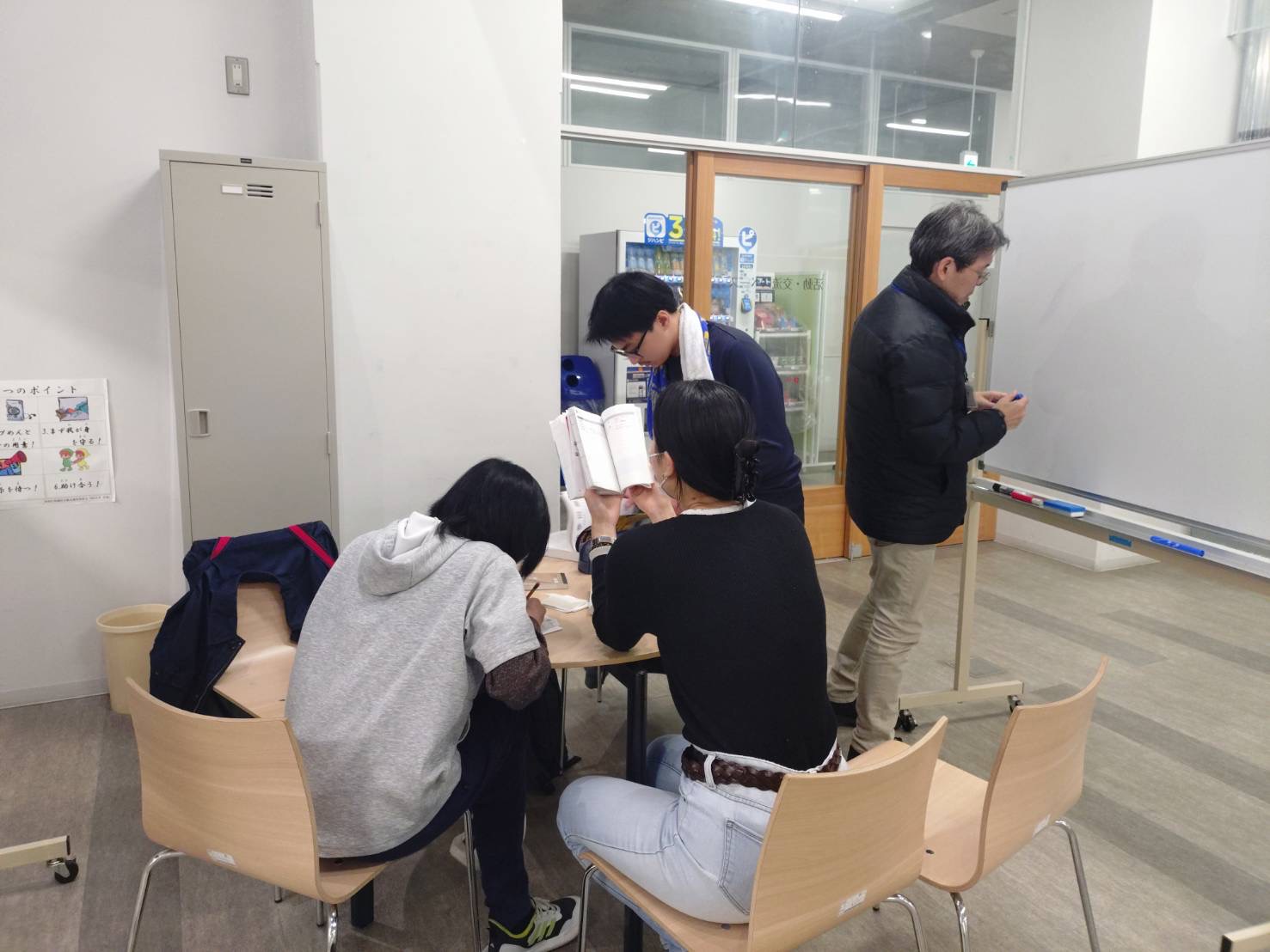 現在学習支援を受けに来ているのは、2年前にフィリピ ンから両親と共に来日した中学3年生と小学6年生の兄弟と、バングラデシュ人のご 両親の下に日本で生まれた高校3年の男子生徒です。フィリピン出身の兄弟は、数学 や英語の勉強をしながら日本語の読み書きを合わせて学んでいます。隣の部屋ではご 両親も日本語の授業を受けられており、いつも一家で楽しそうに通って来られます。 また、バングラデシュ国籍の高3生は、来年2月の大学受験に向けて世界史と国語、 英語を勉強しています。日本語自体に不自由はありませんが、日本の入試制度や各大 学の受験の仕組みの複雑さ・変化の速さに戸惑うこともあり、講師も最新情報を細か く確認しながらアドバイスをしています。
