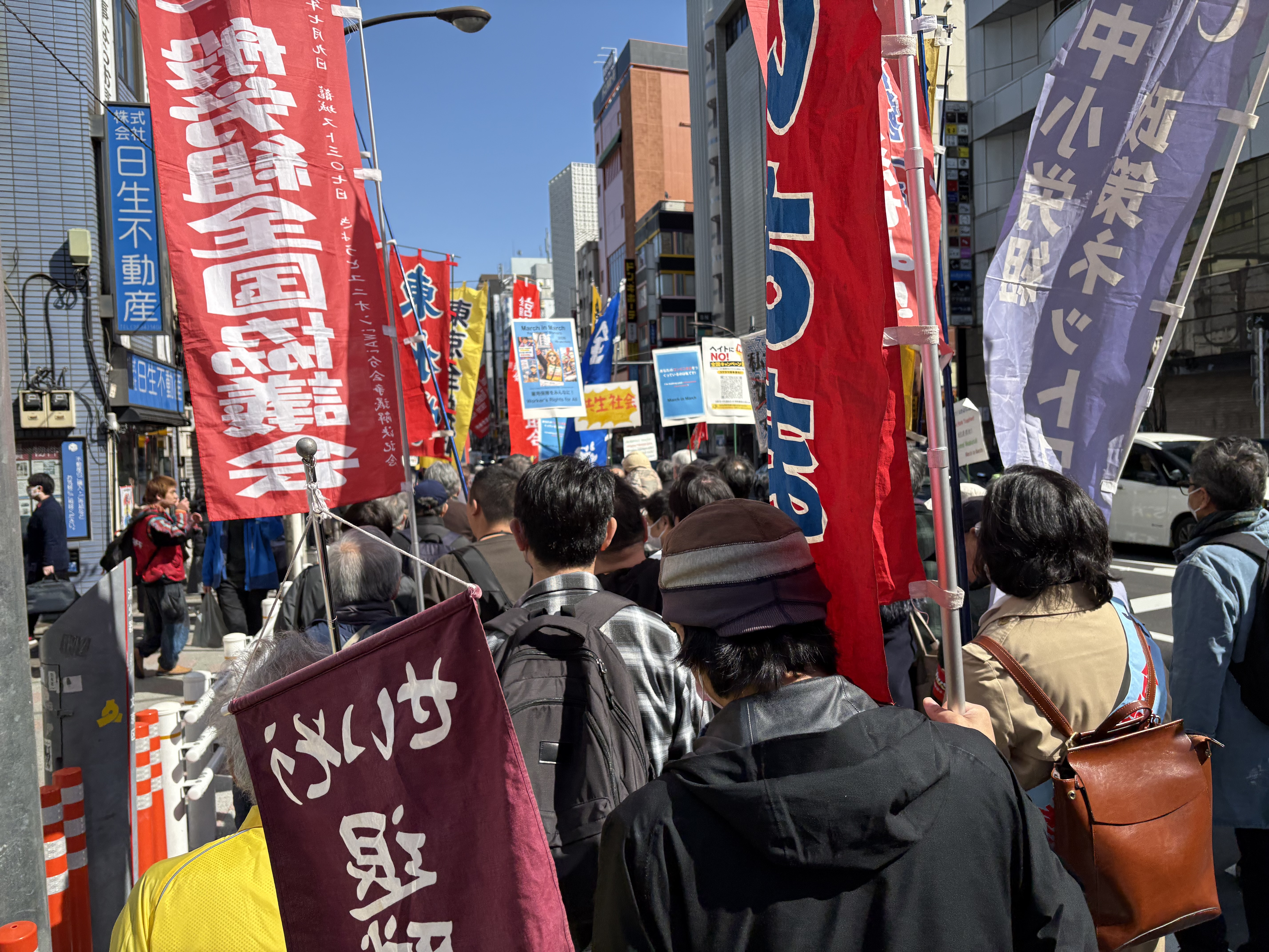台東区の大通をデモ行進しています